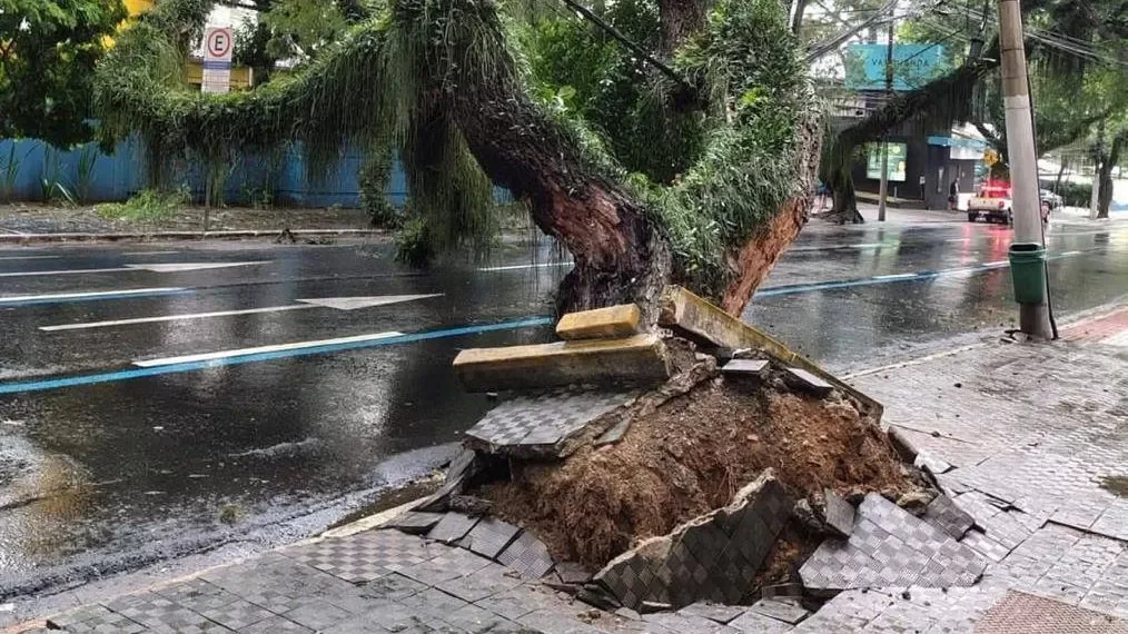 Nem tempo ruim impediu queda de árvores em São José dos Campos, interditando avenidas e cortando energia