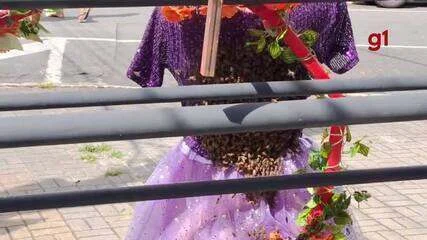 Um enxame de abelhas tomou um manequim em Taubaté, sendo removido no Shopping Popular após chamada zootécnica, destacando a localização na rota migratória desses insetos.