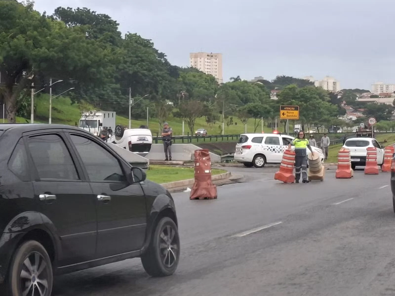 Acidente em São José dos Campos gera operação de trânsito temporária. Único carro capotado no Anel Viário foi retirado duas horas após o incidente, restabelecendo o tráfego local.