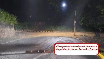 Temporal em Cachoeira Paulista provoca alagamento e interdição de trecho ferroviário após córrego transbordar na Vila Carmem. Defesa Civil monitora situação e alerta para riscos de mais incidentes.