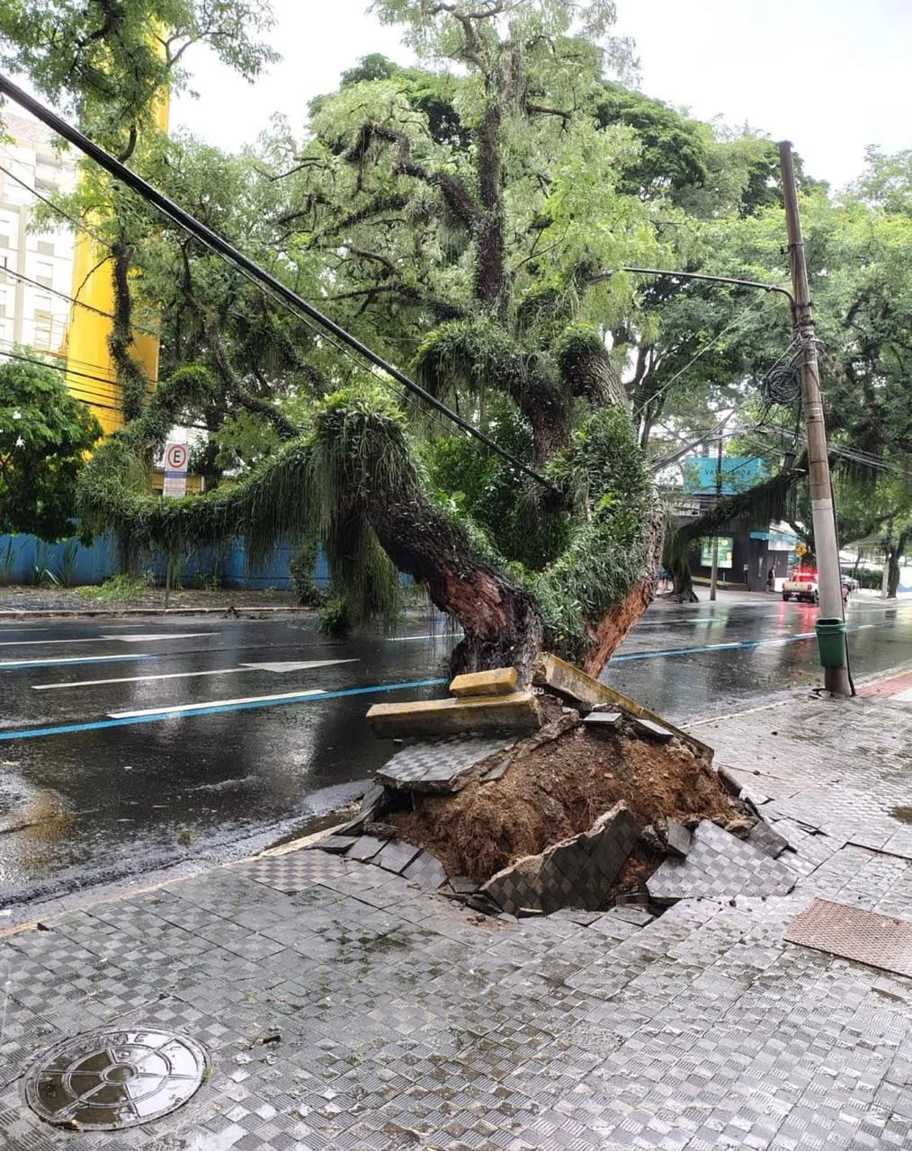 Árvore cai em Avenida José Longo em São José dos Campos, bloqueando tráfego após intensa chuva e exigindo desvio de motoristas; remoção e limpeza realizadas sem relatos de feridos.