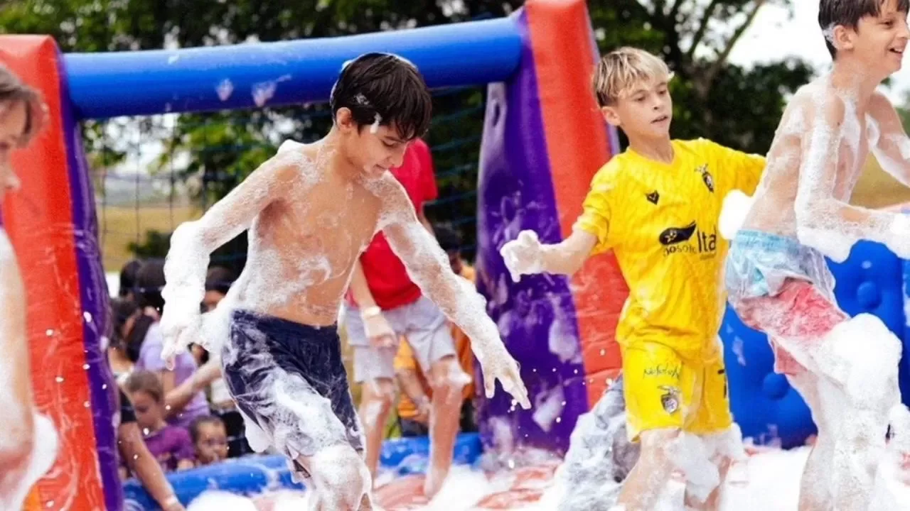 O Shopping Jardim Oriente lança seu 'Verão Kids' com atrações gratuitas, começando com a Arena Aquática para crianças, prometendo diversão segura com futebol de sabão e canhão de espuma, em São José dos Campos.
