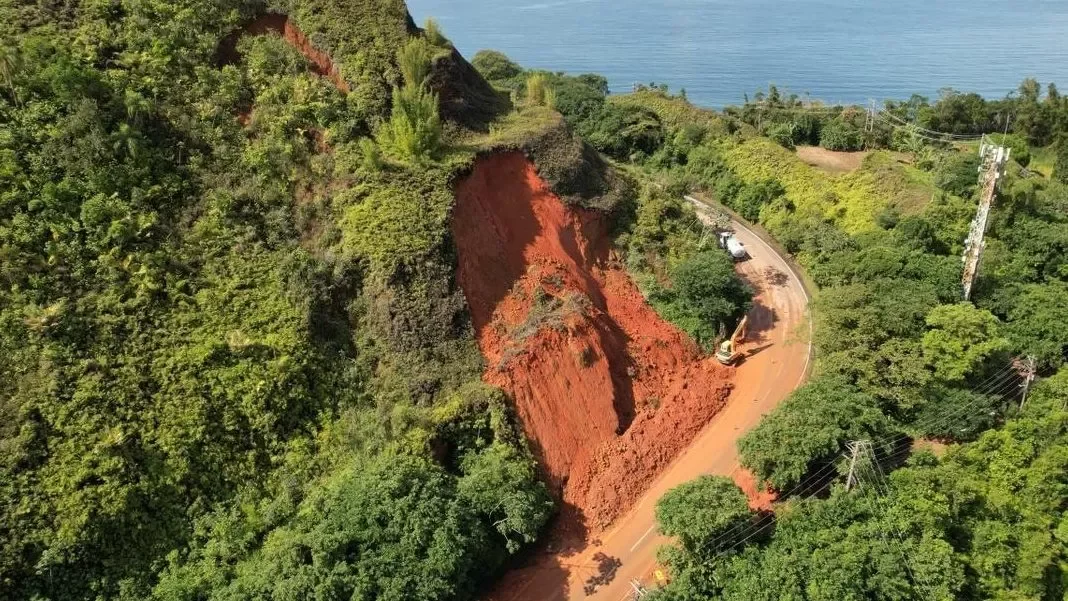 Deslizamento na Rodovia Rio-Santos bloqueia acostamento em São Sebastião após chuvas intensas na Costa Sul. Tráfego retorna sob Pare e Siga; autoridades monitoram segurança.