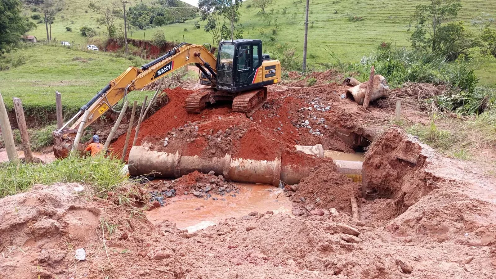 Pontes desabaram após temporal em Santa Branca, isolando moradores da zona rural; obras para criar passagem provisória avançam.